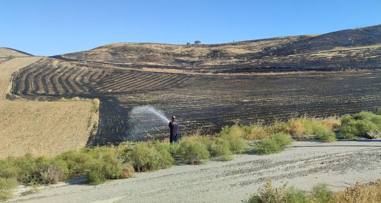 Çorumda anız yangını Yüzlerce dönüm alan zarar gördü