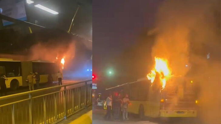 Küçükçekmecede İETT otobüsü alev alev yandı