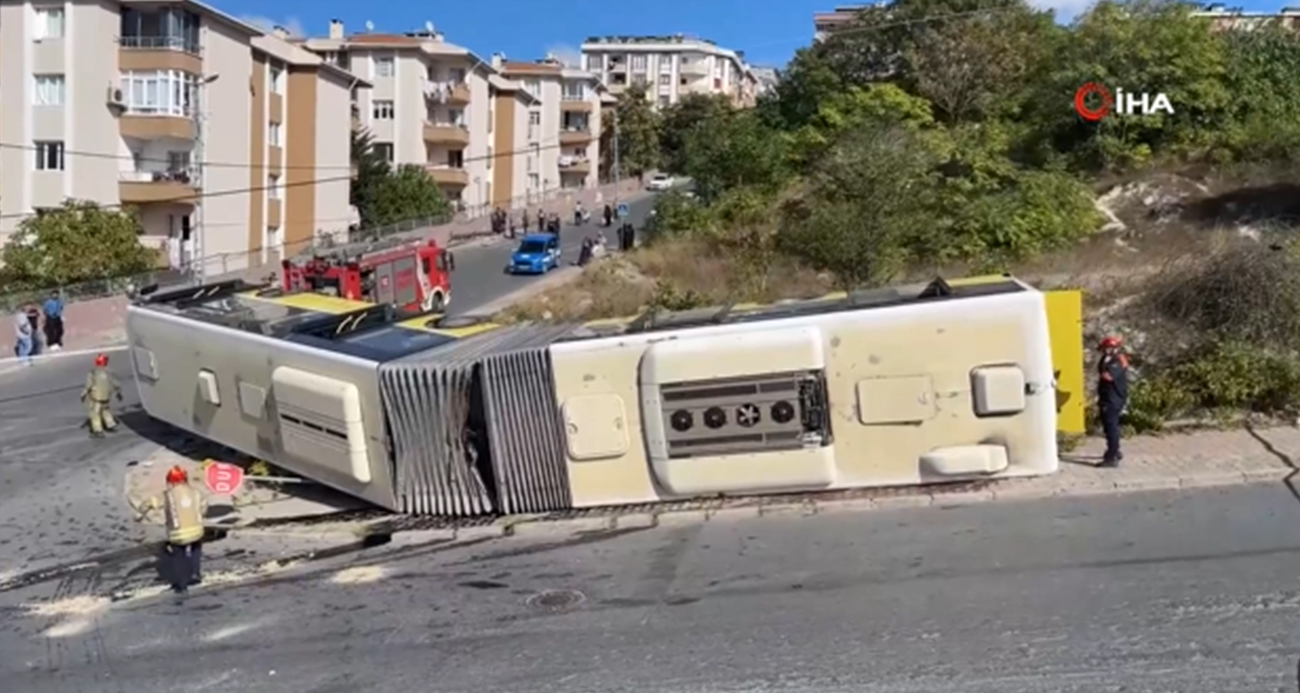 Başakşehir Güvercintepede yokuştan inen İETT otobüsü devrildi
