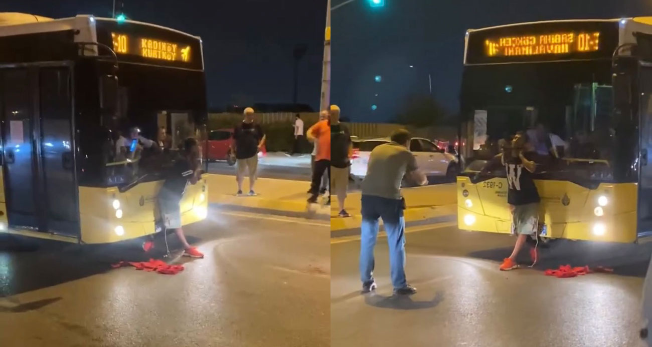Taksiyle İETT otobüsünün önünü kesip aracı yumrukladılar o anlar kamerada