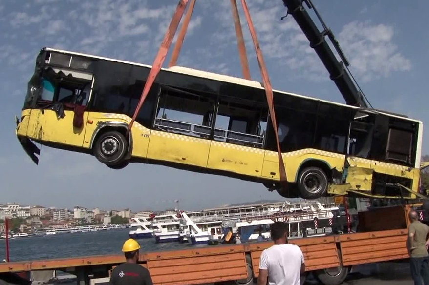6 saatlik çalışmanın ardından denizden çıkarılan İETT otobüsü garaja götürüldü