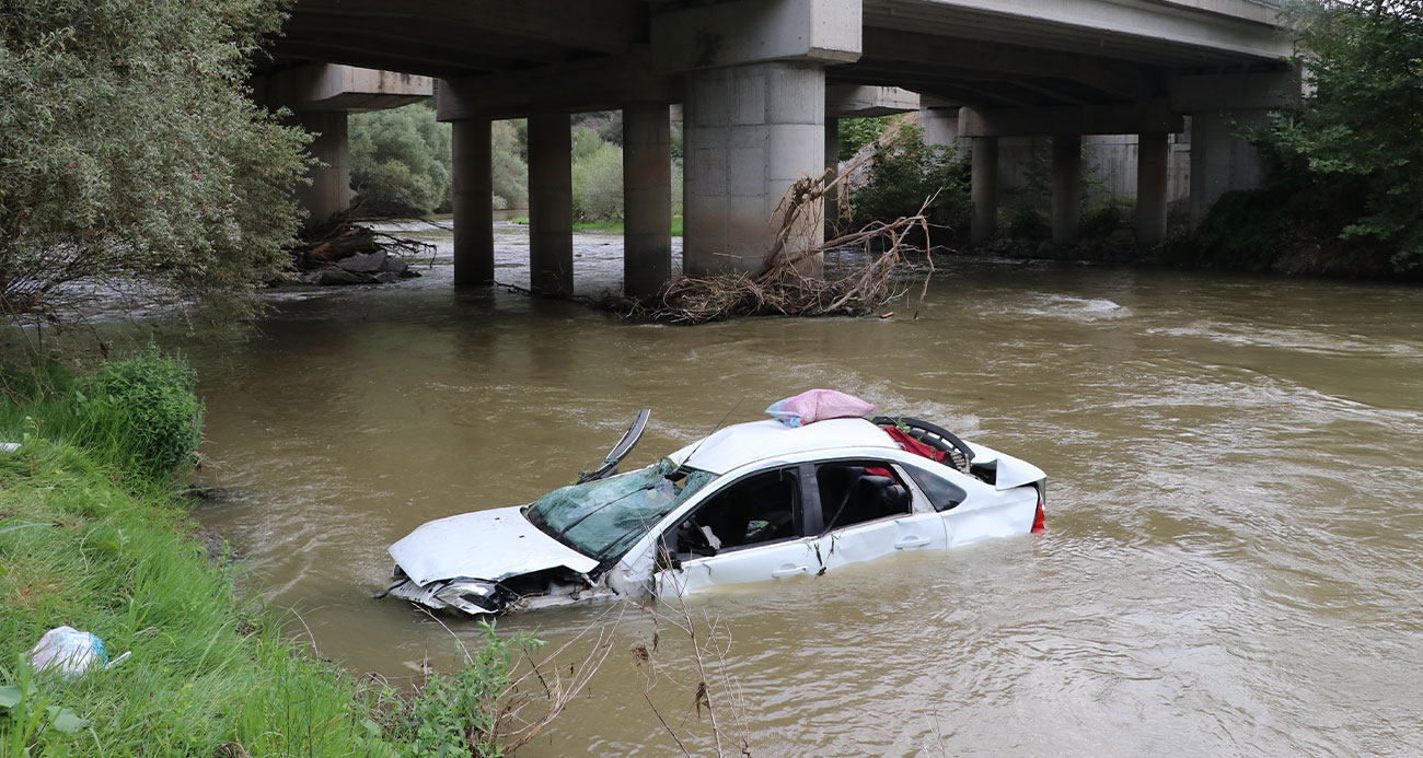 Amasya da otomobil Yeşilırmak a uçtu Aynı aileden 5 kişi yaralandı