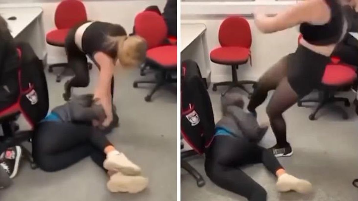 Akran zorbalığı ülkede infial yarattı Kız öğrencinin başka öğrenciyi feci şekilde dövdüğü anlar kamerada