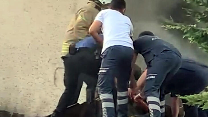 Düştüğü su deposunda mahsur kalan kadın kurtarıldı