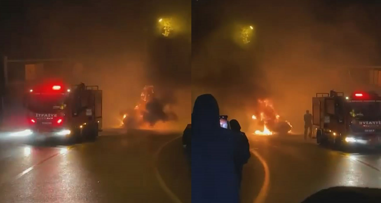Alev alan otomobil ekipleri harekete geçirdi