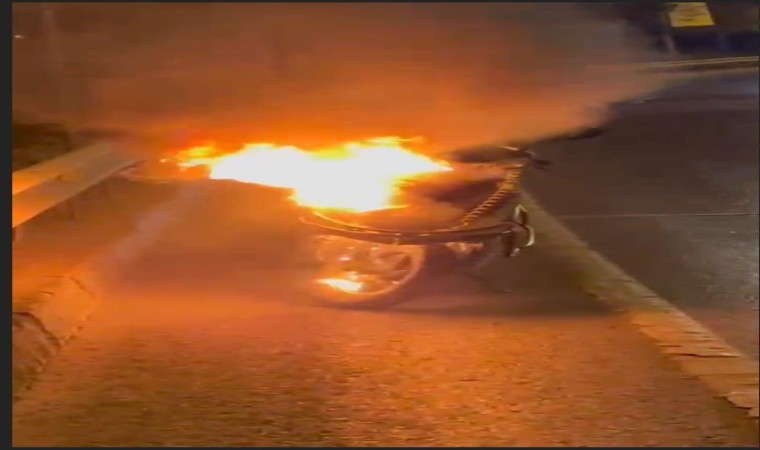 Beyoğlu nda Kuryenin Motosikleti Alev Alev Yandı