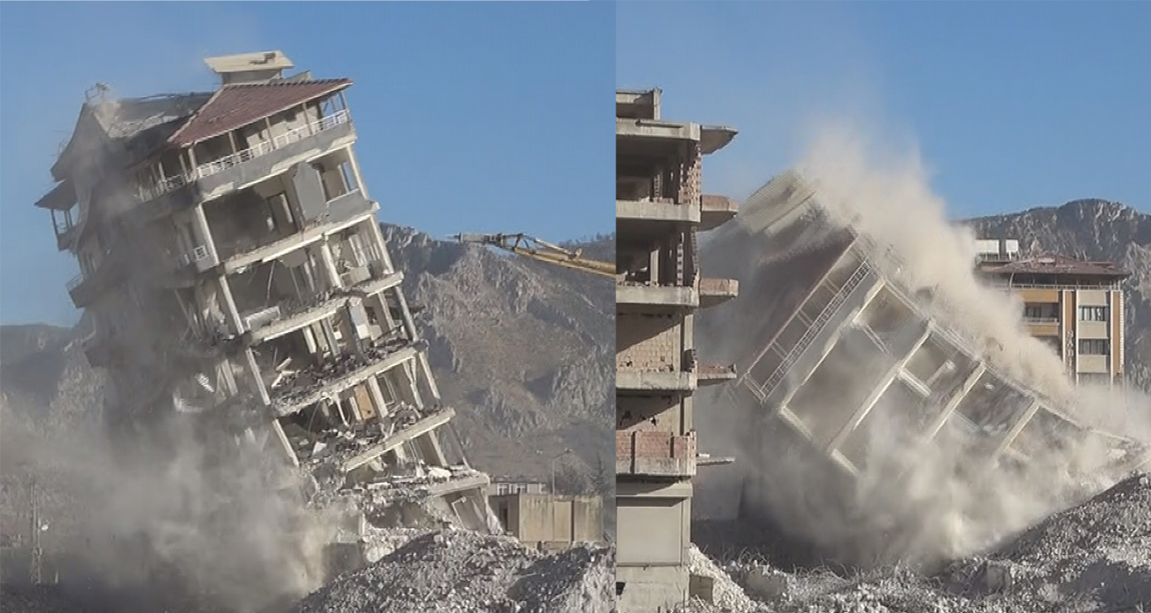 İş makinasının dokunuşuyla bina yerle bir oldu