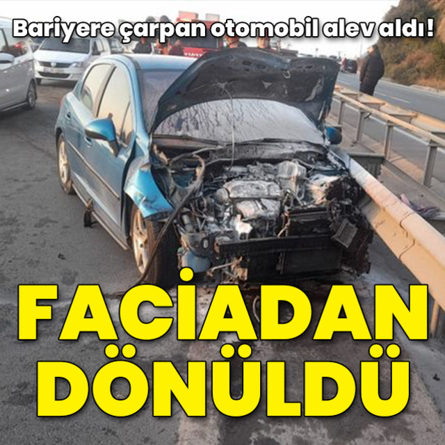 Zonguldak ta bariyere çarpan araç yandı 2 kişi yaralandı