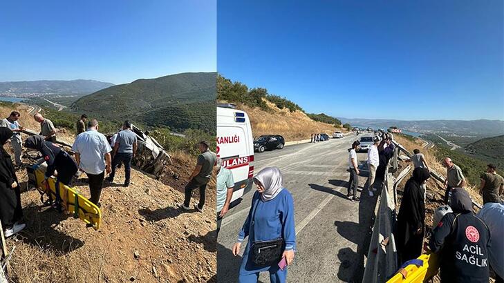 Otomobille çarpışan okul servisi apartman bahçesine uçtu 14 yaralı