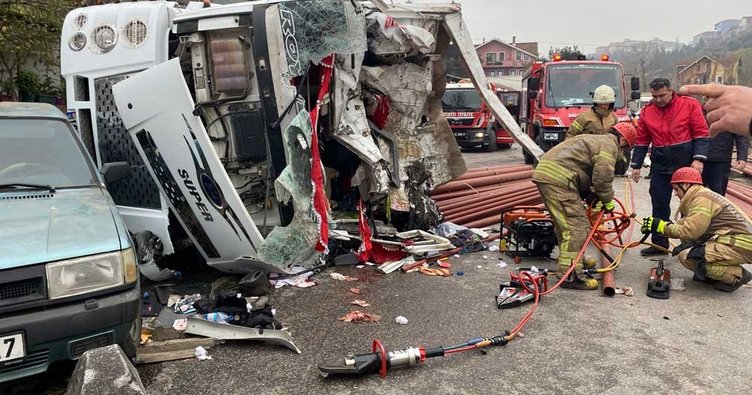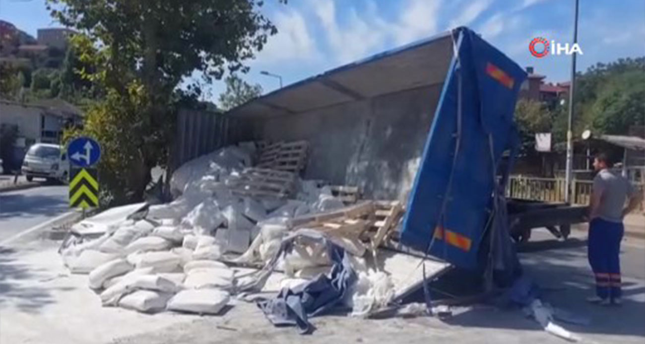Beykozda kontrolden çıkan kamyon duvara çarptı 2 yaralı