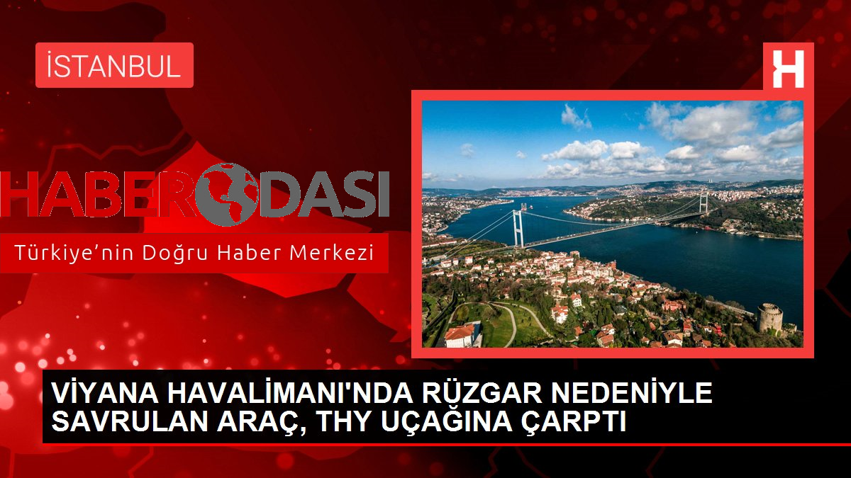 Viyana Havalimanında rüzgar nedeniyle savrulan araç THY uçağına çarptı