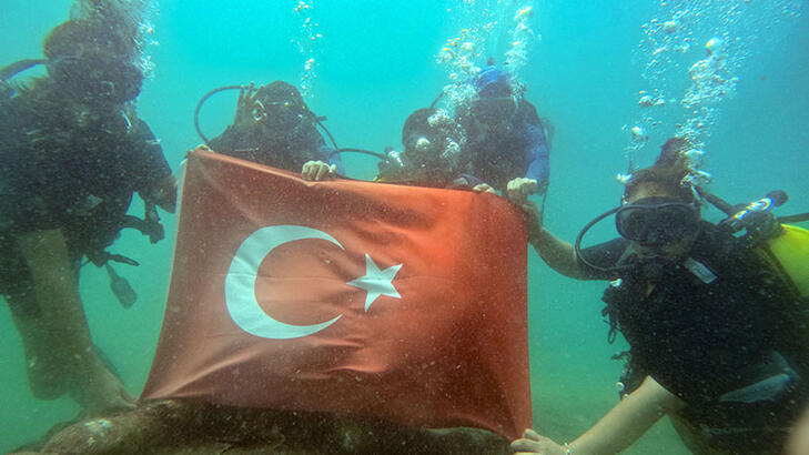 Zafer Bayramını su altında bayrak açarak kutladılar