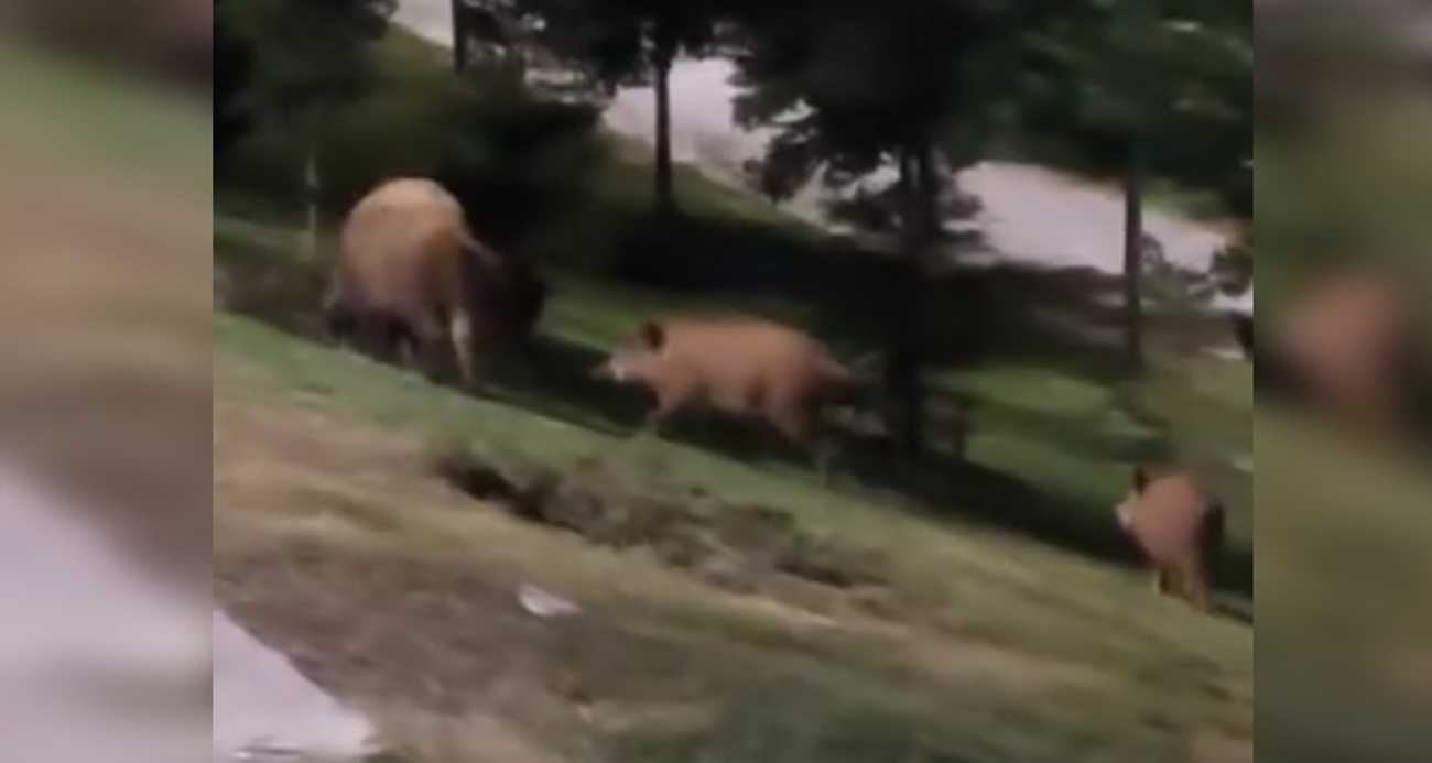 Aç kalan domuzların şehir merkezine indiği anlar kamerada