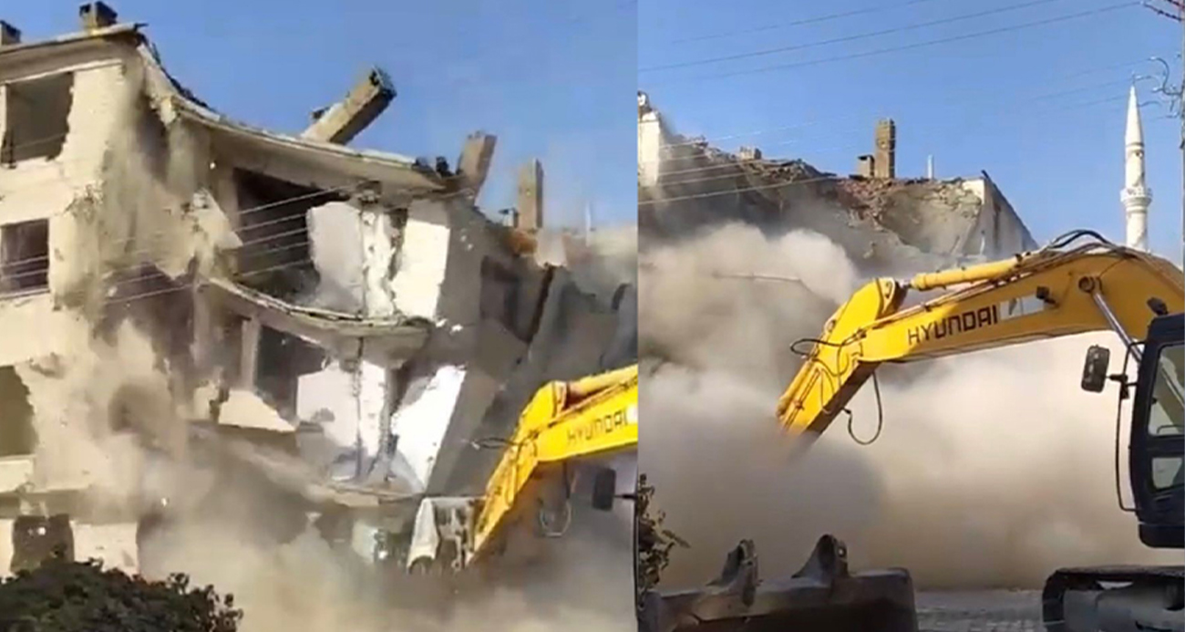 Tek dokunuş yetti Elazığda ağır hasarlı bina yerle bir oldu