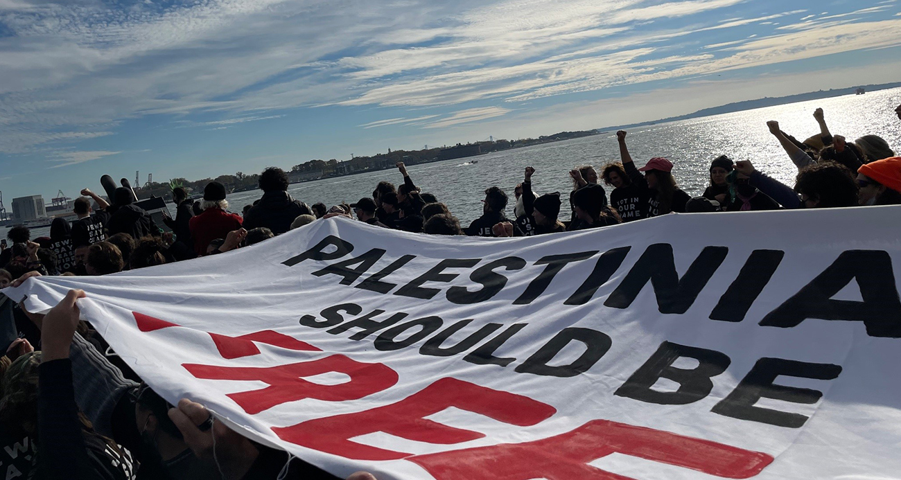 Yahudi gruptan Özgürlük Heykeli önünde Filistine destek eylemi