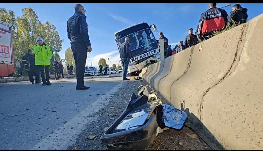 Hafriyat kamyonu yolcu otobüsüne çarptı