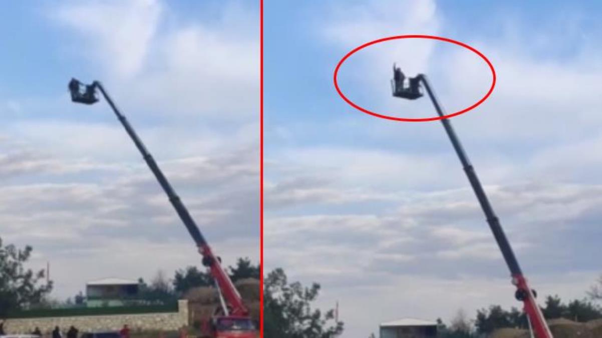 10 metrelik vincin tepesine çıkıp tabancasının şarjörünü boşaltan alkollü maganda Hani yok mu alkış