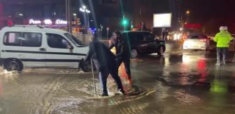 ŞEBEKE BORUSU PATLADI CADDE GÖLE DÖNDÜ