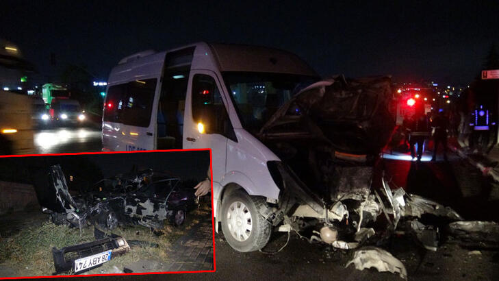 Servis minibüsü ile otomobil çarpıştı 6 yaralı