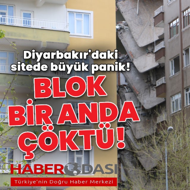 Diyarbakır'da ağır hasarlı binanın bir kısmının çöküş anı kamerada