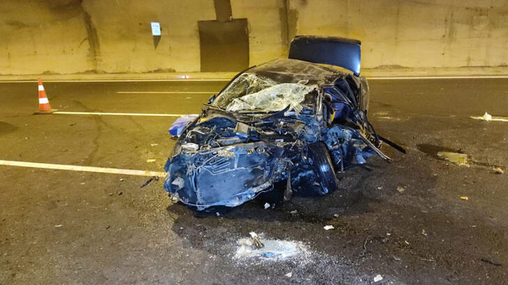 Sultangazide tünelde duvara çarpan otomobil hurdaya döndü