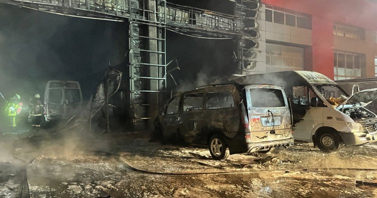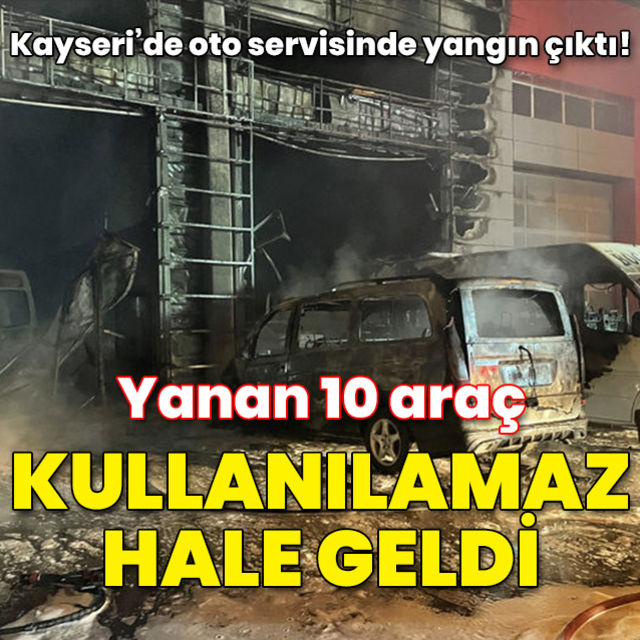 Kayseri de oto servisinde çıkan yangında 10 araç kullanılamaz hale geldi