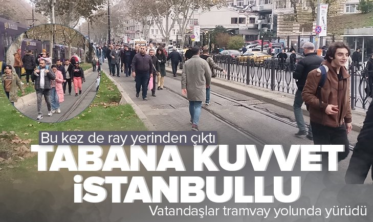 İstanbullunun çilesi bitmiyor Bu kez de ray yerinden çıktı Vatandaşlar tramvay yolunda yürüdü