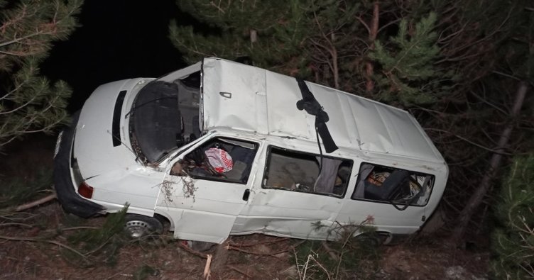 Sivas ta korkunç kaza 40 metreden uçuruma yuvarlanan minibüs ağaca çarparak asılı kaldı 3 yaralı