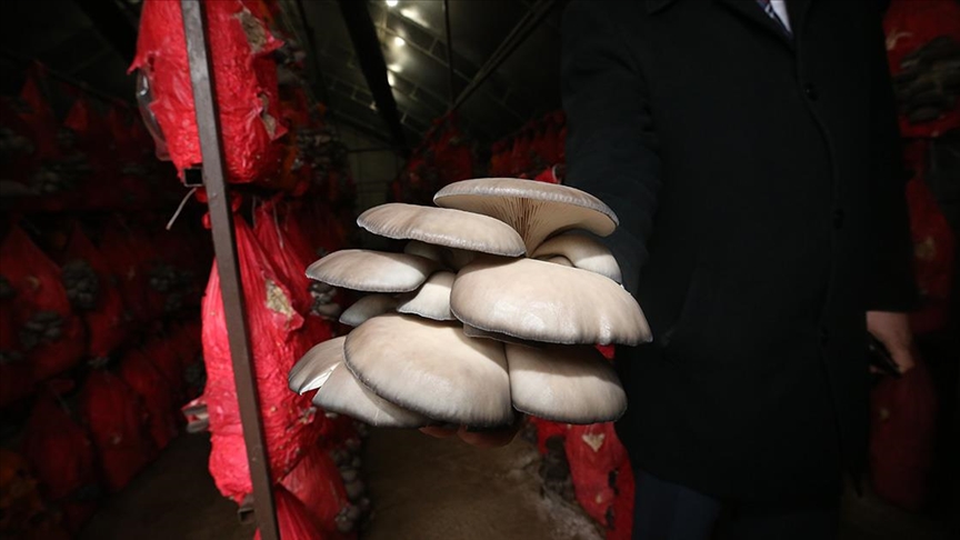 Balıkesirli kadın girişimci serasında yılda 4 ton istiridye mantarı üretiyor
