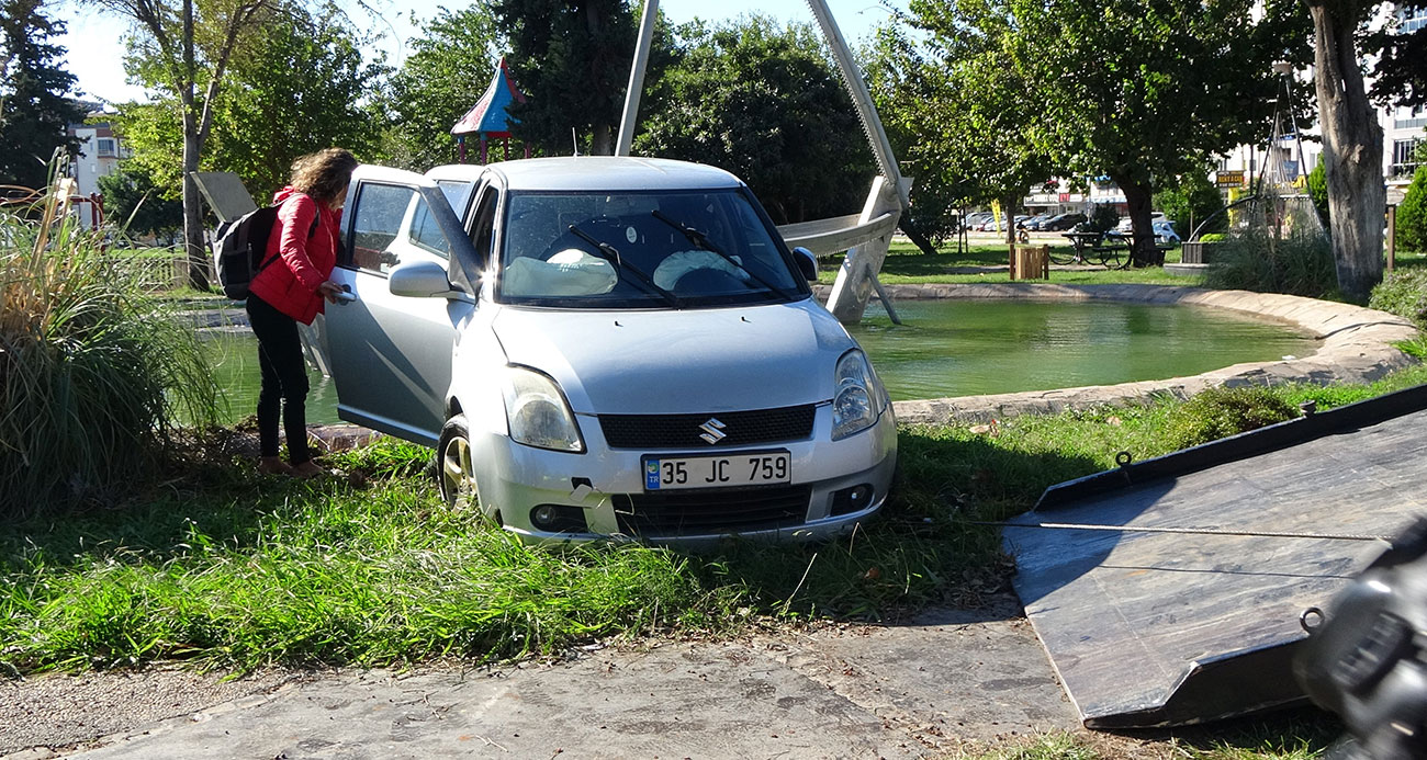 Antalyada otomobil süs havuzuna uçtu Çekici çaresiz kalınca yöntemi vatandaş buldu