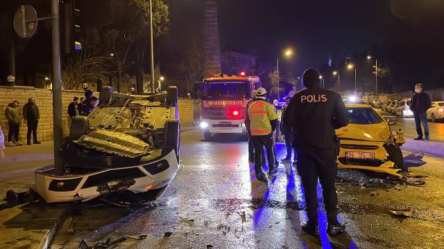 Takla atan takside 3ü ağır 4 kişi yaralandı