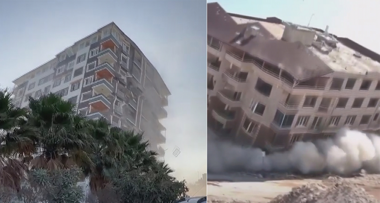 Kolonlarına zarar verilerek yıkılan binaların yerle bir olduğu anlar kamerada
