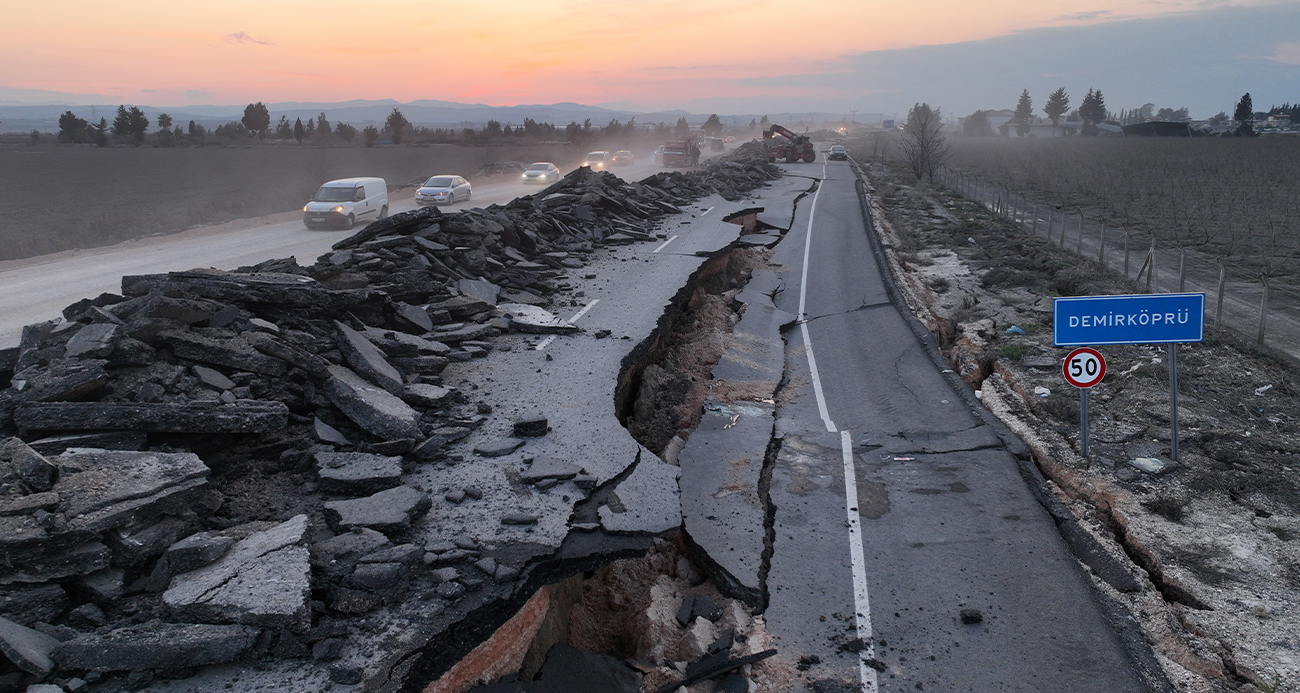 Hatayda 4 metre kırılmaların olduğu yolda depremin 3 gününde başlayan çalışmalar aralıksız devam ediyor