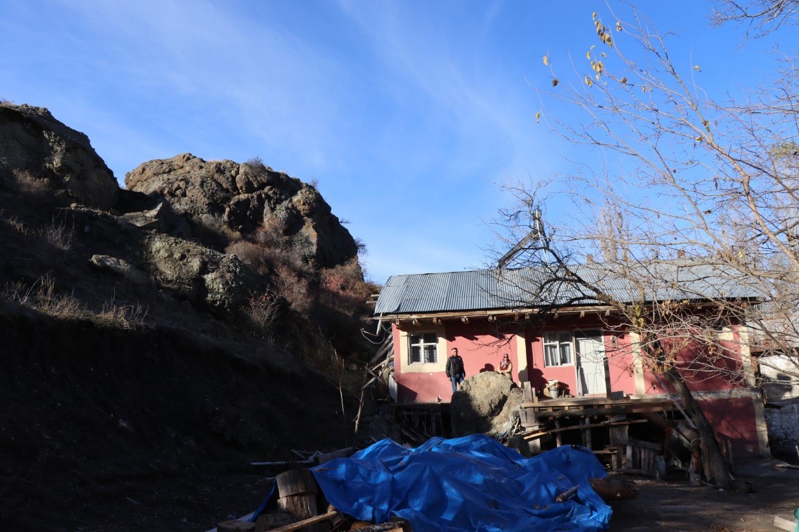 Oltuda dev kaya parçası balkona girdi 5 kişilik aile ölümden döndü