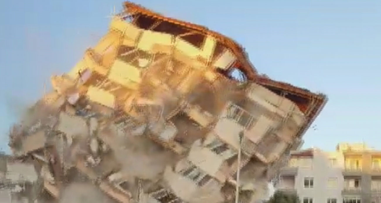 7 katlı binanın yıkımı esnasında vatandaşın yaşadığı panik kamerada