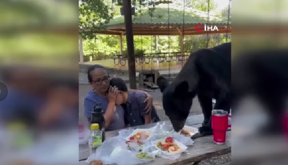 Piknikçiler masalarına dadanan ayı nedeniyle dona kaldı