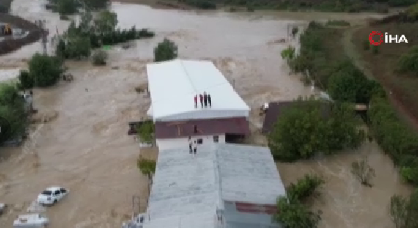 Arnavutköyde dere taştı çatıda mahsur kalan işçiler helikopter bekleniyor