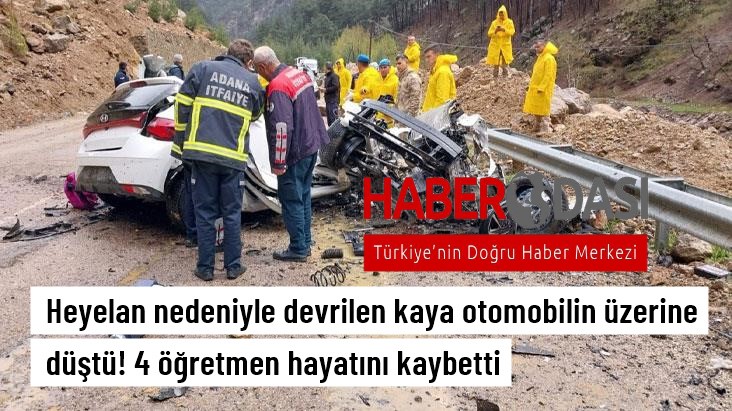 Adanada üzerine kaya devrilen otomobildeki 4 öğretmen öldü