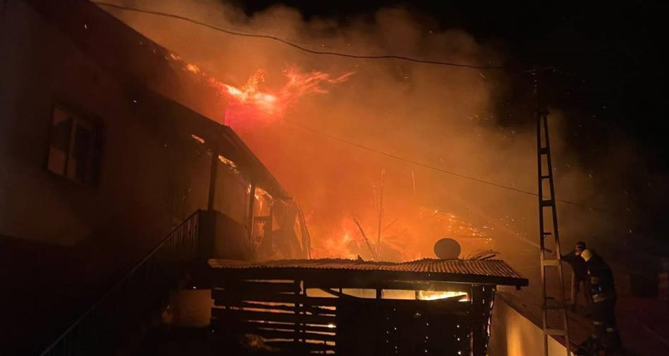 Ahırda başlayan yangın evlere sıçradı 2 büyükbaş hayvan telef oldu