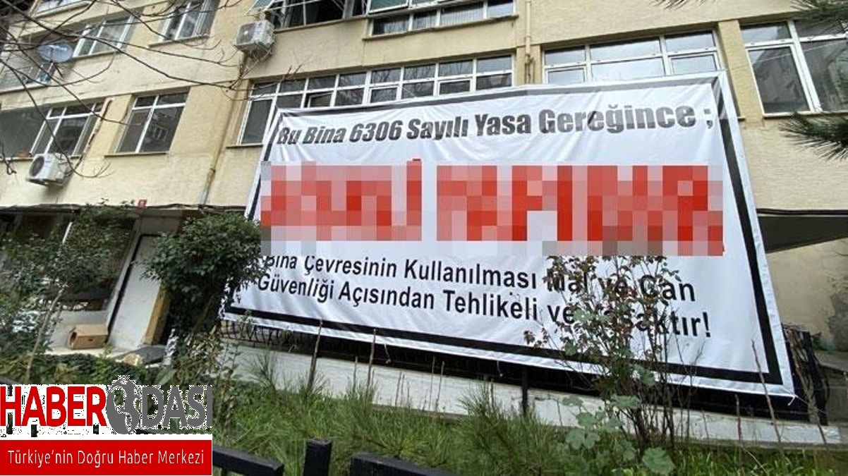 Kadıköyde müteahhitten akılalmaz oyun Binaya Riskli yapı pankartı astırdı