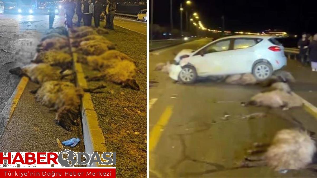 Otomobil sürüyü biçti 16 koyun telef oldu