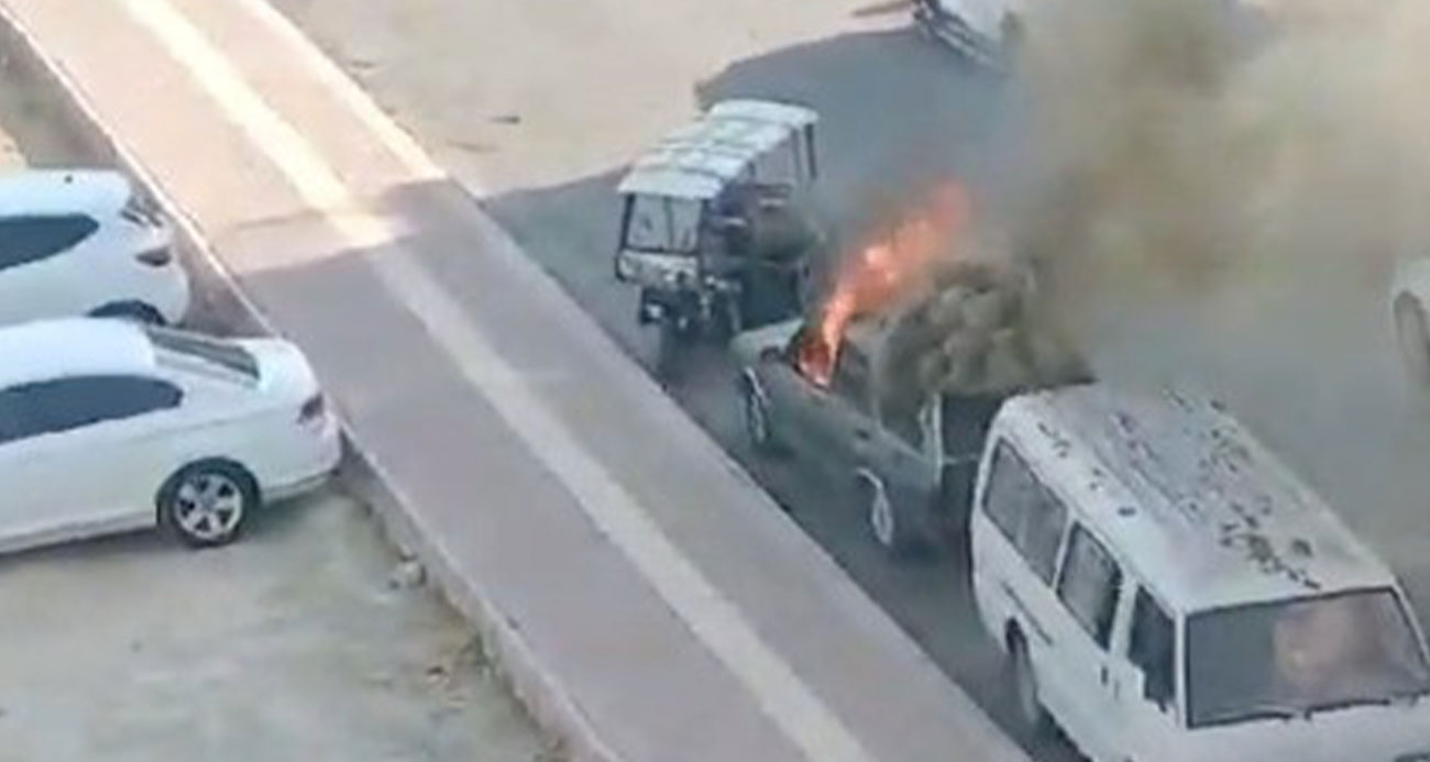 Otomobil alev alev yandı yanındaki araçlar yanmaktan son anda kurtuldu
