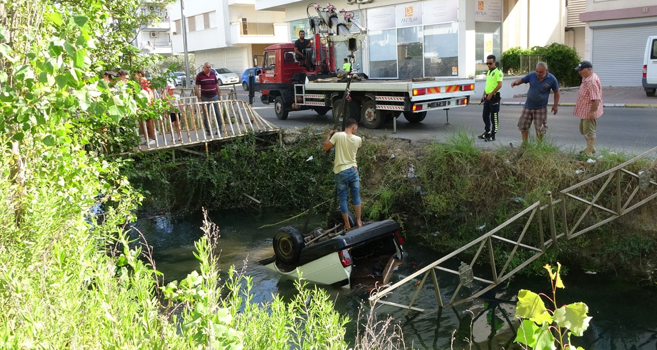 Direksiyonda uyudu sulama kanalına uçarak ölümden döndü