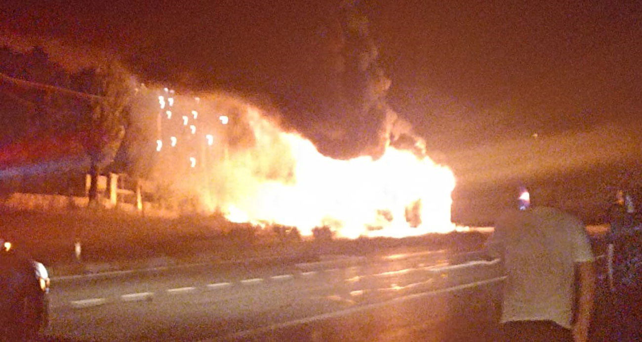 Yolcu otobüsü alev alev yandı