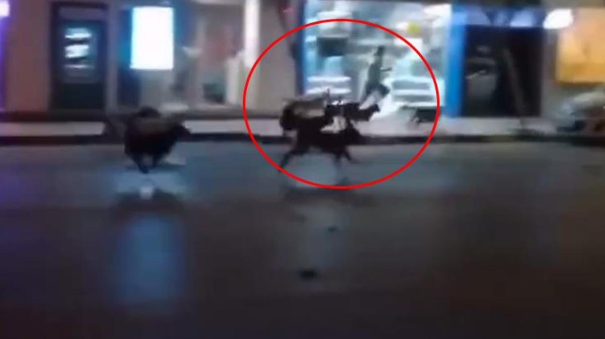 Sokak köpeği sürüsü caddede yürüyen vatandaşı kovaladı