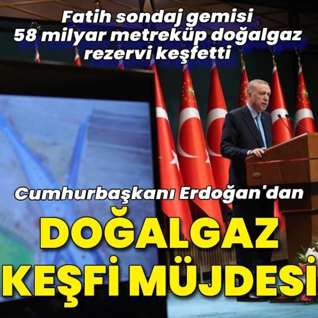 Cumhurbaşkanı Erdoğan Fatih Sondaj gemimiz 58 milyar metreküplük doğal gaz rezervi keşfetti