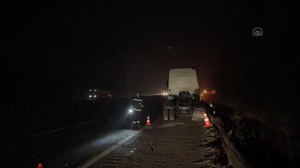 Anadolu Otoyolu nda LPG yüklü tankerin devrilmesi sonucu 1 kişi yaralandı