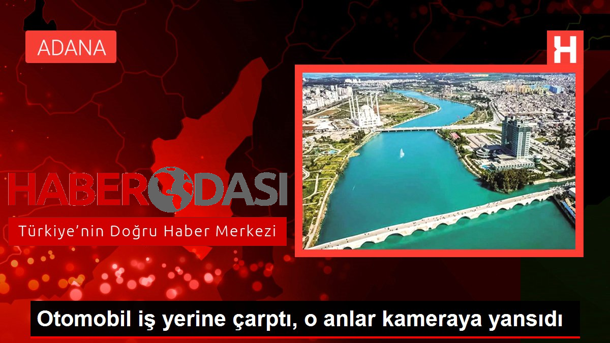 Otomobil iş yerine çarptı o anlar kameraya yansıdı