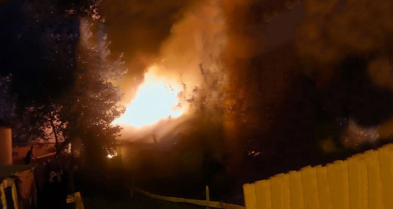 Alevler geceyi aydınlattı tarihi bina alev alev yandı