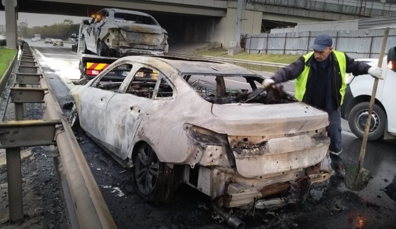 Sultanbeylide çarpışan iki araç alevlere teslim oldu 3 hafif yaralı